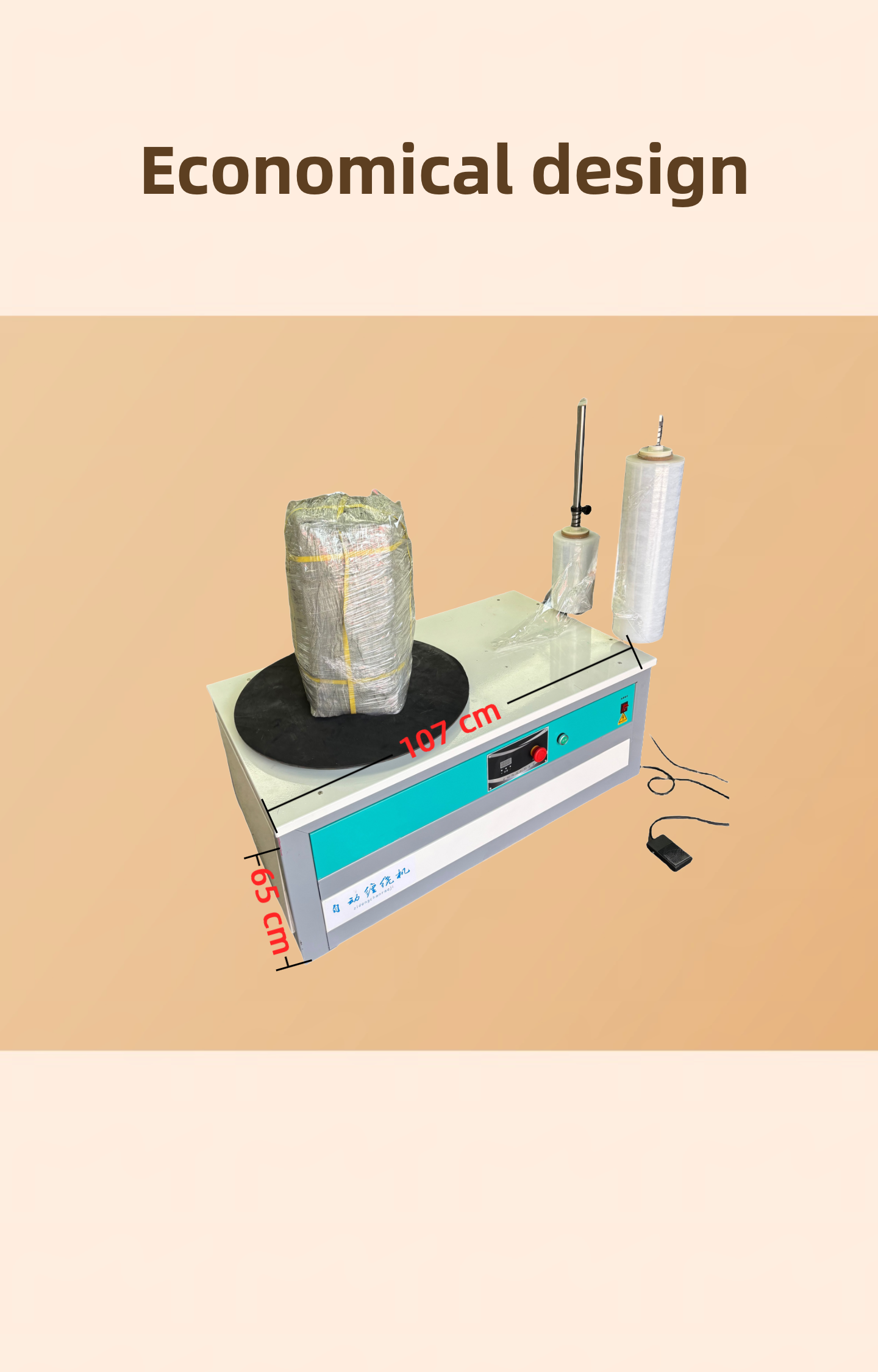 Automatic Wrapping MachineThe small desktop stretch wrapping machine is an efficient packaging device specifically designed for small goods, parts, or light - weight items. It is widely used in small - batch packaging scenarios in industries such as electronic components, hardware accessories, small medical devices, stationery, and aquatic products. Its compact body design saves valuable desktop space while achieving the same core packaging functions as large - scale stretch wrapping machines. It fixes items by stretching stretch film or adhesive tape to form a sealed and stable packaging effect, effectively preventing damage to goods caused by collisions and friction during transportation and storage. At the same time, it also has protective functions against dust and moisture.小型桌面缠绕包装机是一款专为小型货物、零部件或轻型物品设计的缠绕膜和胶带包装设备,广泛应用于电子元件、五金配件、小型医疗器械、文具用品、水产冷鲜等行业的小批量包装场景。其紧凑的机身设计节省了宝贵的桌面空间,却能实现与大型缠绕机同等核心的包装功能 —— 通过拉伸缠绕膜和胶带对物品进行缠绕固定,形成密封且稳固的包装效果,有效防止货物在运输、存储过程中因碰撞、摩擦导致的损坏,同时具备防尘、防潮的保护作用。In terms of structure and working principle, the desktop stretch wrapping machine usually consists of a rotating worktable, a film holder, a lifting system (manual adjustment in some models), and a control system. During operation, place the items to be packaged on the rotating worktable, manually pull out the stretch film or adhesive tape and fix it at the bottom of the item. After starting the equipment, the rotating worktable drives the item to rotate at a constant speed, and the film holder releases the stretch film synchronously according to preset parameters such as the number of wrapping circles and the stretching force of the film. As the item rotates, the stretch film will closely adhere to the surface of the item, spirally wrapping from the bottom up until the entire height of the item is covered. After the packaging is completed, the equipment stops automatically, and the stretch film can be cut off. Some high - end models also support adjusting the wrapping speed and setting the number of reinforced wrapping circles at the top/bottom to meet the packaging needs of different items.从结构与工作原理来看,桌面缠绕包装机通常由旋转工作台、膜架、升降系统(部分机型为手动调节)及控制系统组成。操作时,将待包装物品放置在旋转工作台上,手动引出缠绕膜或胶带并固定在物品底部,启动设备后,旋转工作台带动物品匀速转动,膜架则根据预设参数(如缠绕圈数、膜的拉伸力度)同步释放缠绕膜。随着物品的旋转,缠绕膜会紧密贴合在物品表面,从底部向上螺旋缠绕,直至覆盖整个物品高度,完成包装后设备自动停止,切断缠绕膜即可。部分高端机型还支持调节缠绕速度、设定顶部 / 底部加强缠绕圈数,以满足不同物品的包装需求。 Regarding performance advantages, the desktop stretch wrapping machine is characterized by "compactness and high efficiency". Its floor area is usually only 0.5 - 1 square meter, suitable for environments with limited space such as laboratories, small workshops, and warehouse corners. The packaging efficiency can reach 10 - 30 pieces per hour, saving more than 50% of the time compared to manual wrapping and significantly reducing labor costs. By mechanically stretching the stretch film, the utilization rate of the film can be increased by 20% - 30%, reducing waste of packaging materials. In addition, the equipment is driven by a low - noise motor, and the running noise is generally less than 60 decibels, meeting the noise standards of office and production environments.在性能优势方面,桌面缠绕包装机以 “小巧效率高” 为核心特点。其占地面积通常仅为 0.5-1 平方米,适合实验室、小型车间、仓库角落等空间有限的环境;包装效率可达每小时 10-30 件,相比人工缠绕能节省 50% 以上的时间,大幅降低人工成本;通过机械拉伸缠绕膜,能使膜的利用率提升 20%-30%,减少包装材料浪费;此外,设备采用低噪音电机驱动,运行时噪音一般低于 60 分贝,符合办公及生产环境的噪音标准。 The weight of the items suitable for this equipment is usually between 5 - 50 kilograms, and the maximum packaging height is approximately 30 - 100 centimeters depending on the model. It can adapt to various forms of items such as cartons, plastic boxes, and small parts with irregular shapes. Whether it is the independent packaging of a single small product or the combined packaging of multiple small items, a neat and firm winding effect can be achieved through it.该设备适用的包装物重量通常在 5-50 公斤之间,有效包装高度根据机型不同约为 30-100 厘米,能适配纸箱、塑料盒、不规则形状的小部件等多种形态的物品。无论是单个小型产品的独立包装,还是多个小件物品组合后的集合包装,都能通过它实现整齐、牢固的缠绕效果。 In terms of operation and maintenance, the desktop stretch wrapping machine adheres to the design concept of "simplicity and ease of use". The control panel mostly adopts button or touch - screen operation, equipped with clear icon instructions. Even operators using it for the first time can master the basic process within a few minutes. The vulnerable parts of the equipment (such as bearings and motors) are designed in a standardized way. Daily maintenance only requires regular cleaning of the worktable surface, inspection of the film holder tension, and addition of lubricant. The maintenance cost is low, the failure rate is low, and it can maintain a stable wo